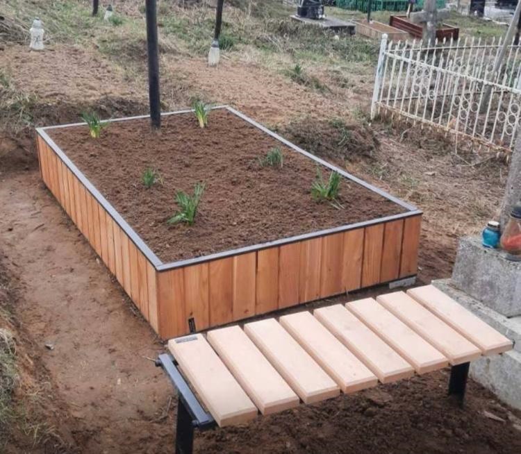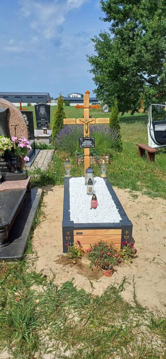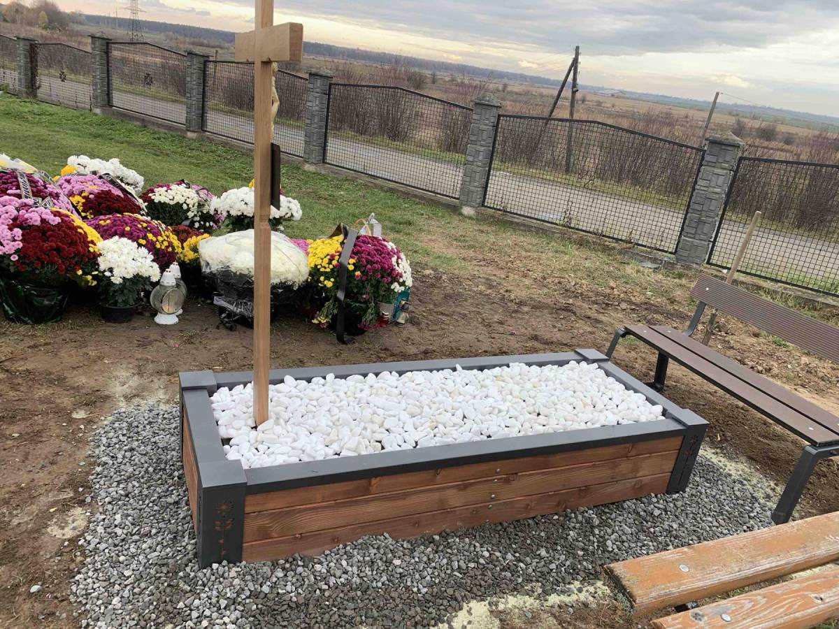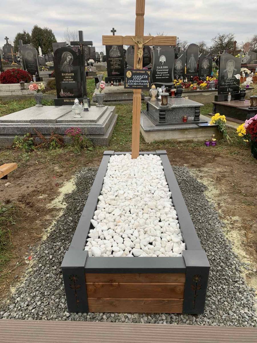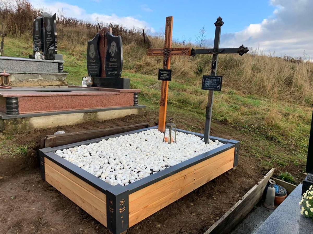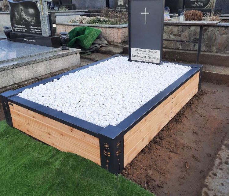 Кожен надгробок має шипоподібну мембрану з внутрішньої сторони, що захищає деревину від безпосереднього контакту з землею, завдяки чому термін експлуатації максимально довгий!
