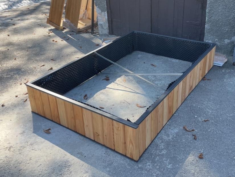 Для виготовлення використані модрина та оцинкована сталь. Процес монтажу швидкий та зручний.