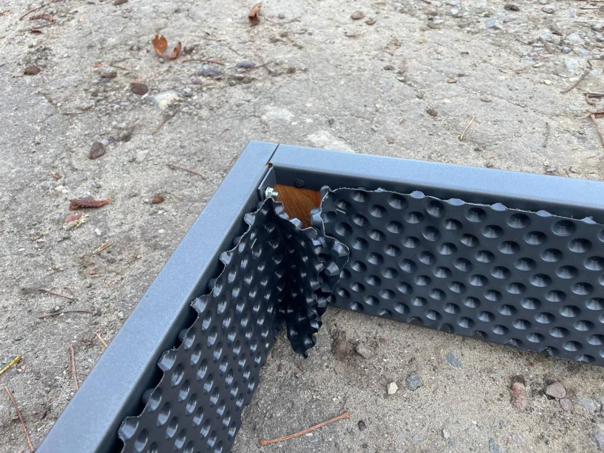 Встановлена широка металева рама та декоративні кутники забезпечують надійний захист від корозії завдяки гальванічному цинку та покриттю високоякісною фарбою.
