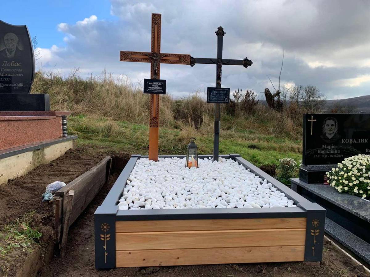 Надгробки деревʼяні одинарні сталь рама (модрина) є найпопулярнішою моделлю серед асортименту надгробків.